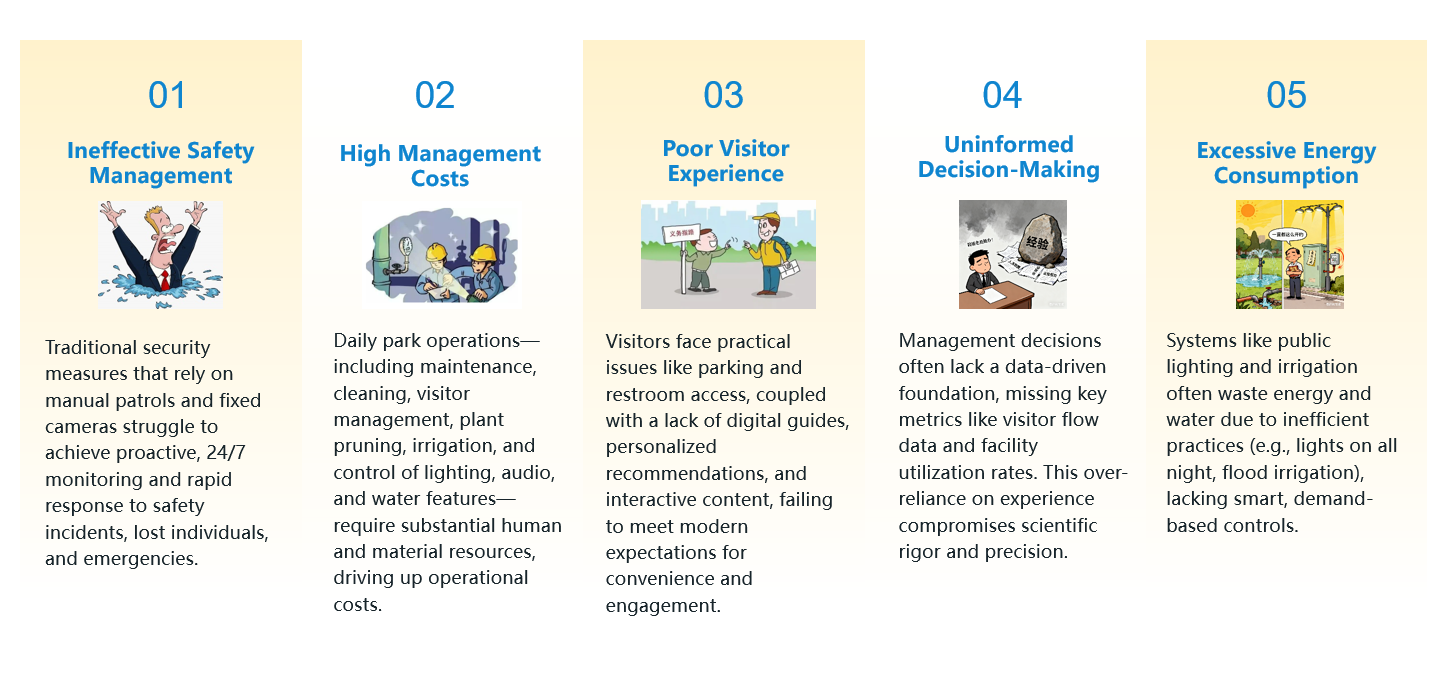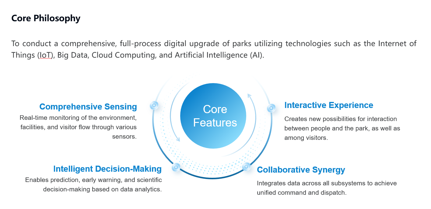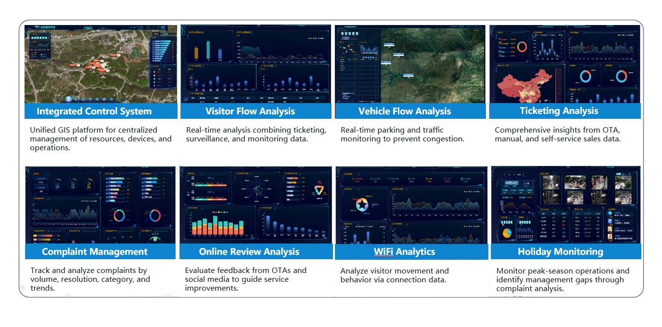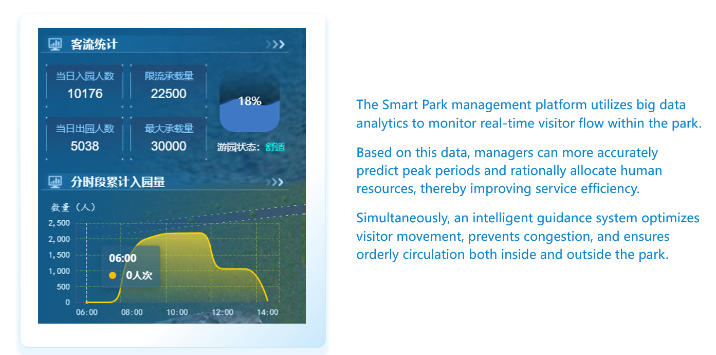 Through the integration of IoT, big data, and AI technologies, it achieves intelligent operation and management of scenic areas and parks.
